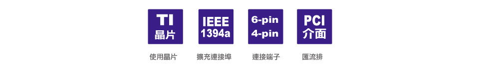 提供2個6-pin和1個4-pin IEEE 1394a連接埠 | |